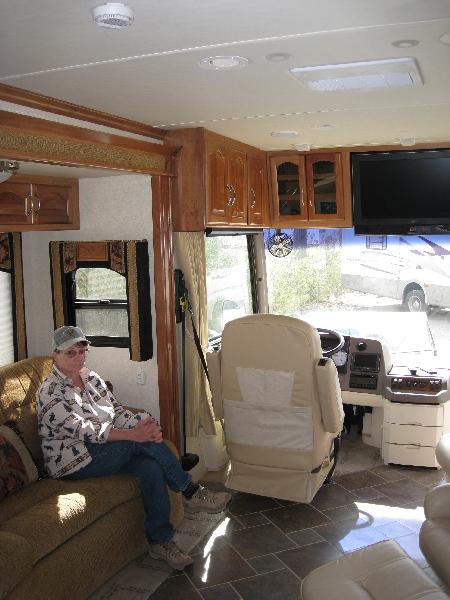 In February of 2009 we were camping in the desert in our cabover camper. We were to be gone a month and so spent more time "inside" than we ever had before and got a little tired of turning sideways to pass each other while stepping over the dog. Sooooo, we went into Quartzsite to kill time looking at motorhomes. Oooooppppppssssss..........
